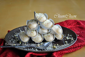 6. When they will be completely at room temperature, take them out of the syrup, place on a plate in single layer, sprinkle grated khoya & chopped pistachio. Enjoy.......