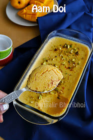 In the morning remove the Aam Doi from the oven and place inside the refrigerator for chilling.