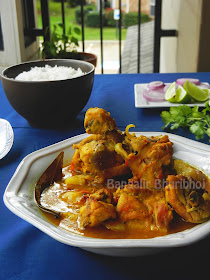 When the pressure will be out from the cooker open the lid and serve the "Murgir Jhol" with steamed rice.